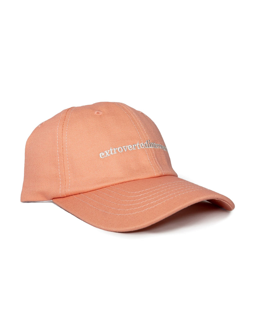 Unconstructed 6 panel baseball cap with extrovertedintrovert embroidery text logo