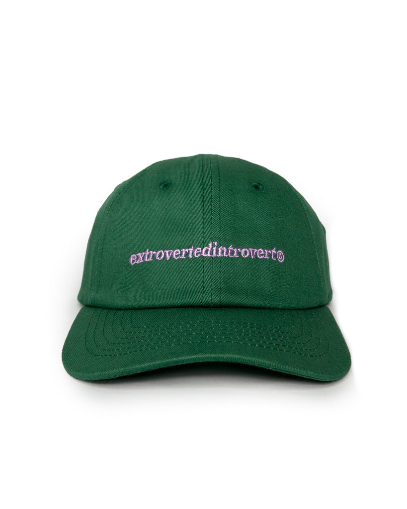 Unconstructed 6 panel baseball cap with  extrovertedintrovert embroidery text logo