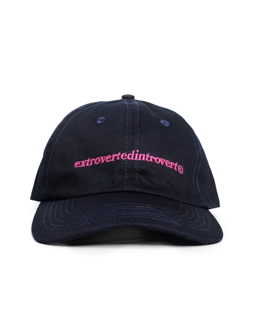 Unconstructed 6 panel baseball cap with extrovertedintrovert embroidery text logo